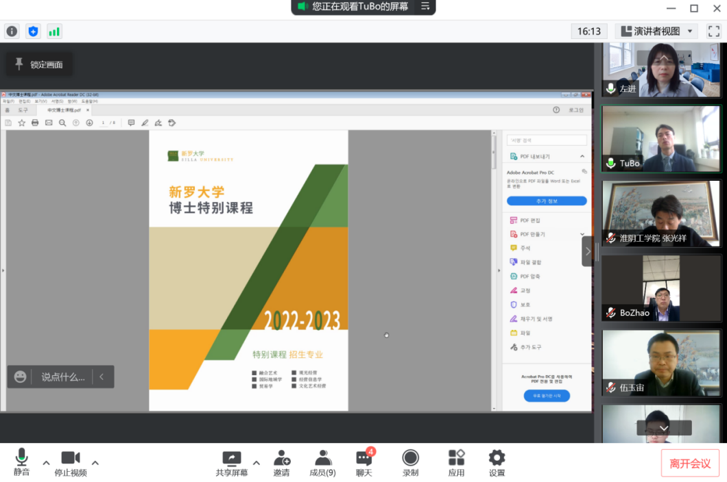 涂波详细介绍了新罗大学的博士、硕士和本科项目,特别是博士项目的特色与优势,同时表示新罗大学非常期待我校的师生到釜山学习、交流。