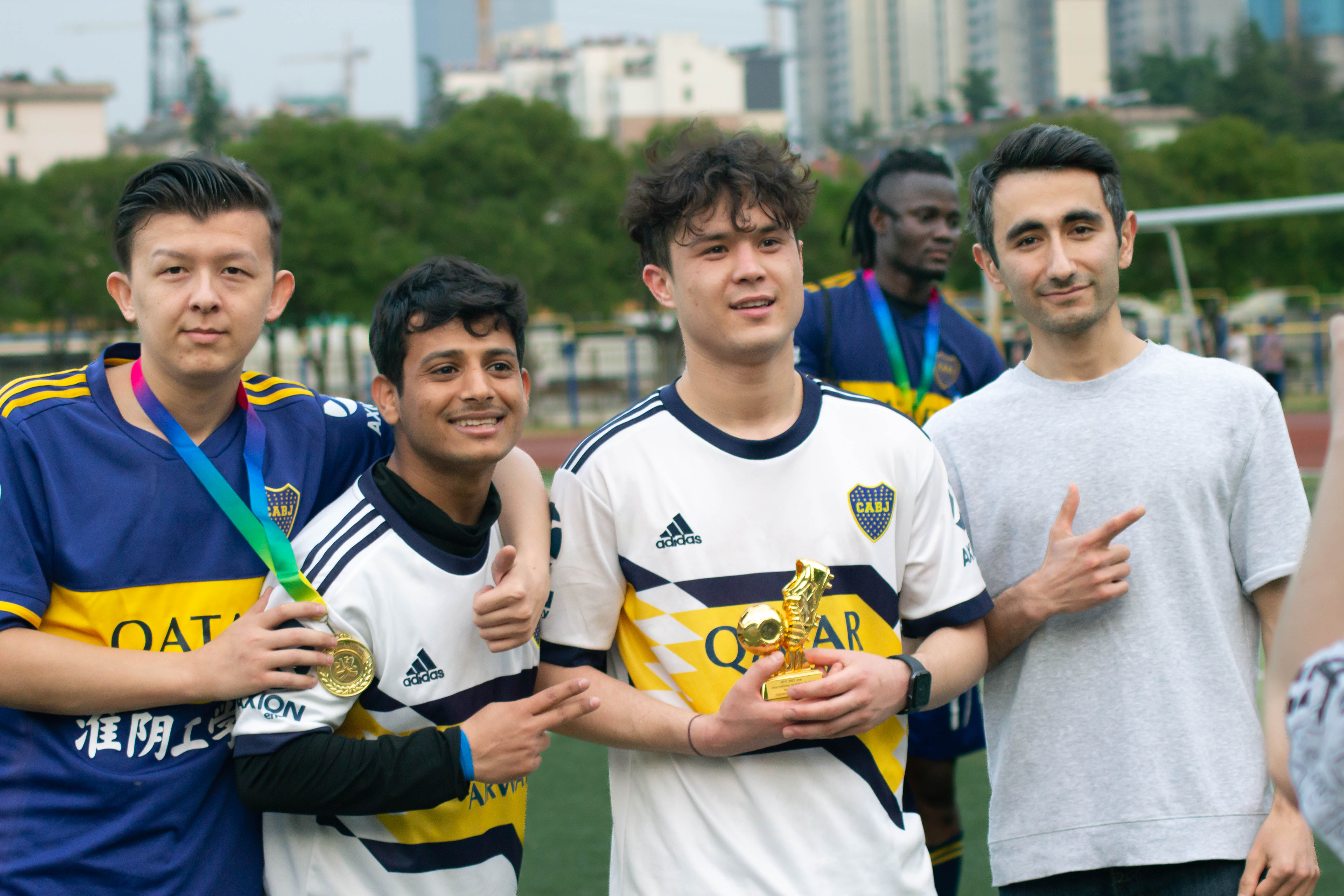 虽然天气微热,但留学生足球队员个个情绪高涨,斗志昂扬。随着裁判员一声哨响,两组队伍开始了激烈的比拼。最终TeamD以3:0的比分战胜TeamB,获得冠军。来自乌兹别克斯坦的欧林在本场球赛中获得“最佳射手”称号。