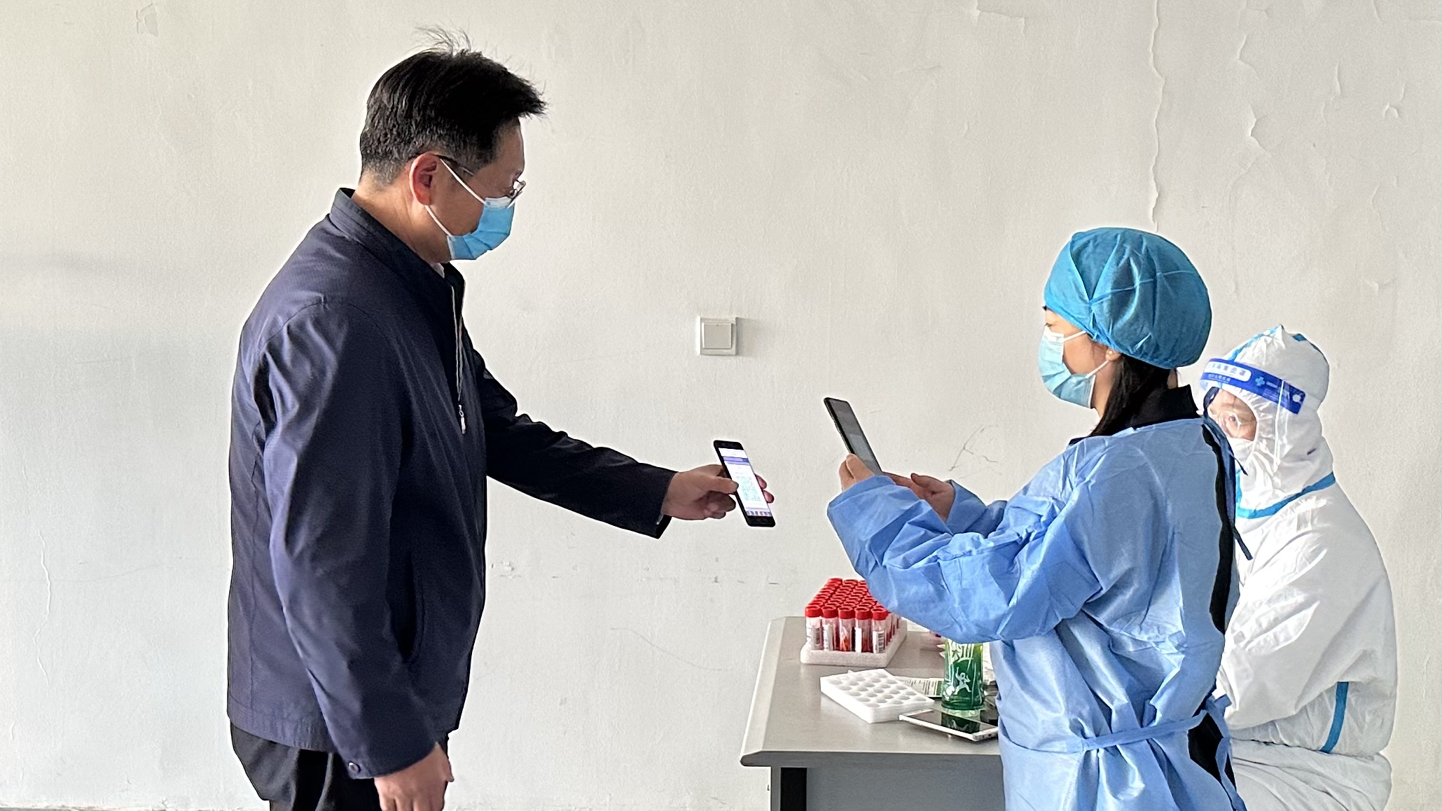 活动中,部门全体党员和左进处长在逸夫楼核酸检测点主要承担核酸扫码工作。每位志愿者全力以赴,以耐心细致的服务态度为参加核酸检测的师生扫码,用实际行动践行初心使命、扛起责任担当。