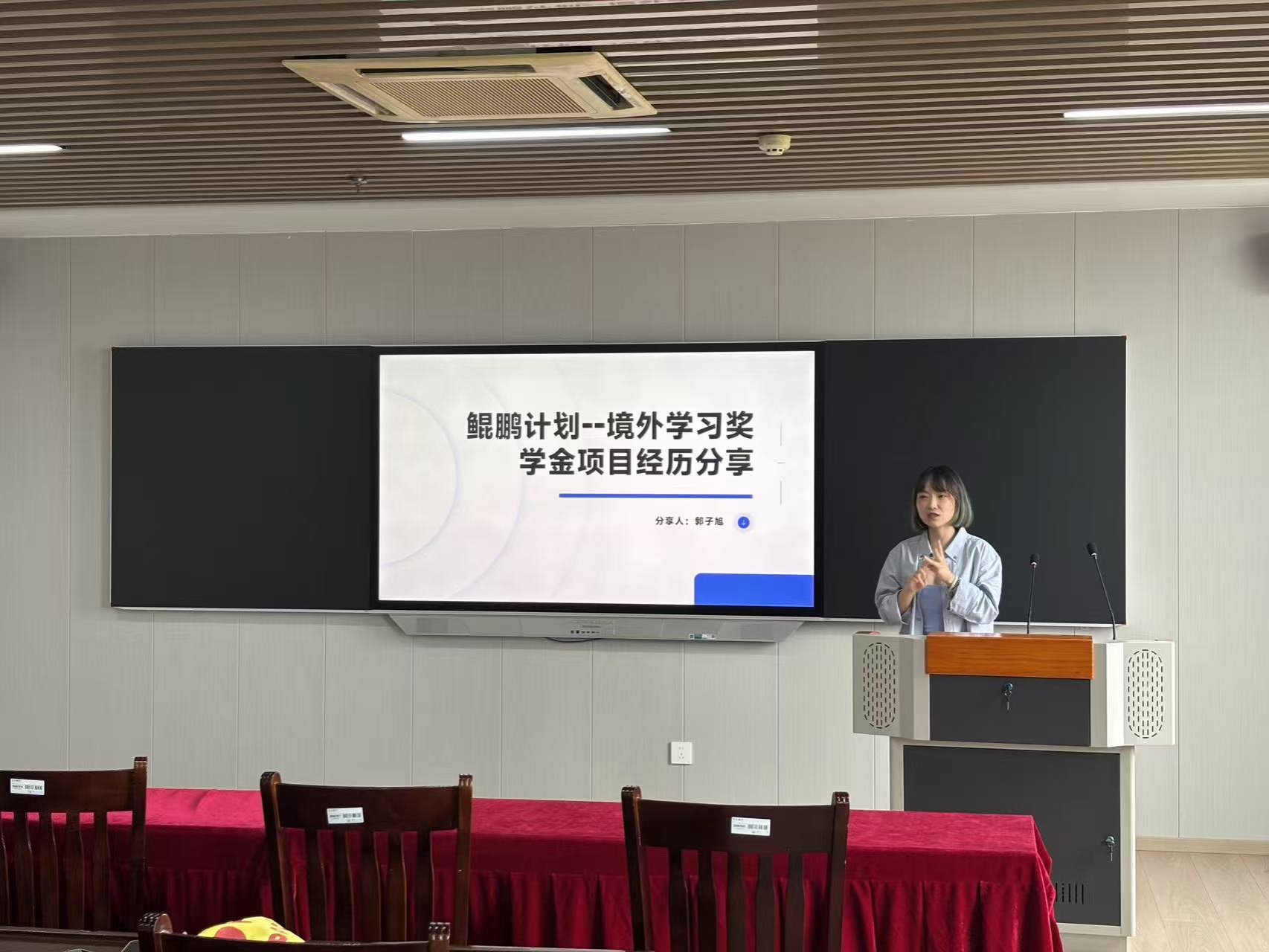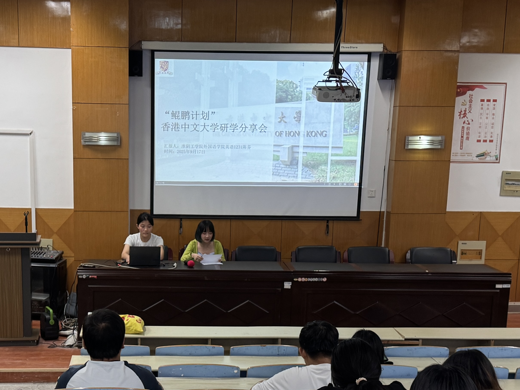 分享会上,国际处吉芊融老师介绍了“鲲鹏计划”的项目背景与政策支持。她指出,该项目作为江苏省教育厅牵头、淮阴工学院全力支持的高水平境外学习项目,是在原江苏高校大学生境外学习政府奖学金项目基础上优化升级的重要举措,为优秀学生赴海外交流学习提供了有力支撑。