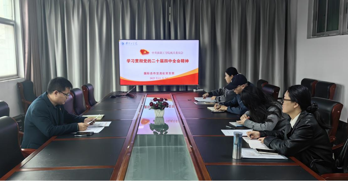 11月7日,国际合作交流处党支部召开全体党员大会,专题开展学习贯彻党的二十届四中全会精神主题党日活动。党支部书记洪坤主持会议,支部全体党员参加。