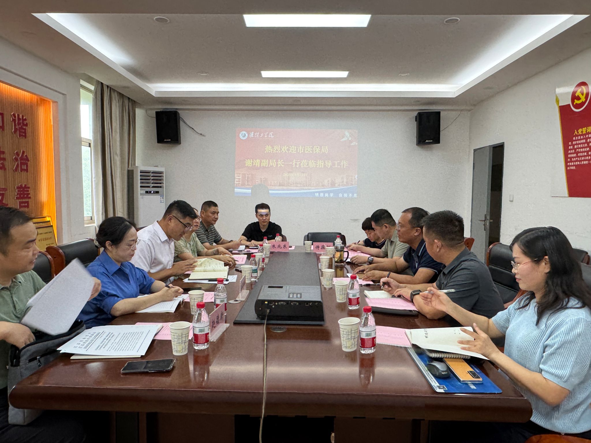 2025年9月11日上午,淮安市医保局副局长谢靖带队来我校就大学生参保扩面工作开展专题调研,后勤基建处处长张文亚热情接待调研组一行。