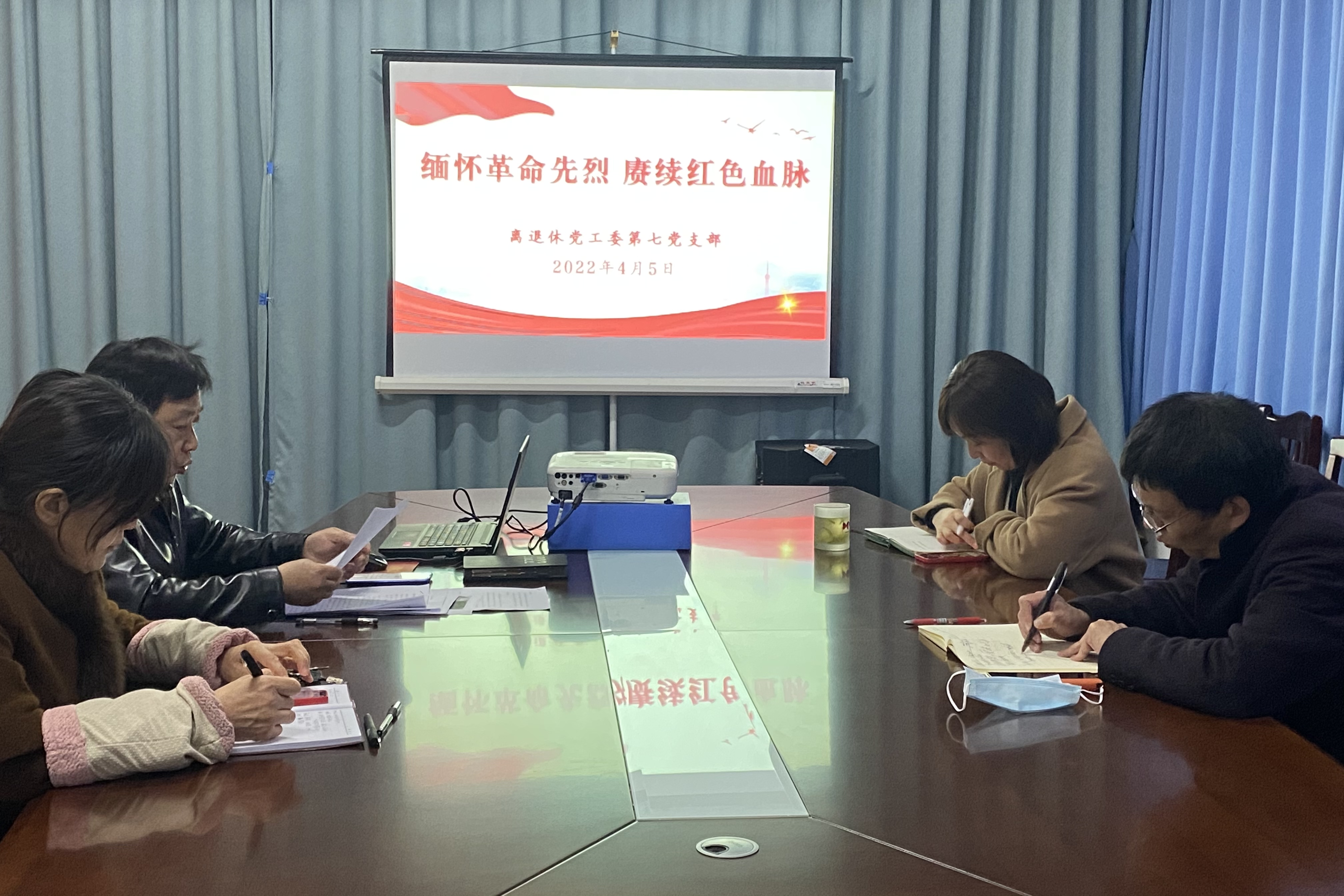 在清明节来临之际,为缅怀和悼念为革命牺牲的烈士,学习和继承革命先烈的光荣传统,弘扬爱国主义精神,4月5日下午,离退休党工委第七党支部组织开展“缅怀革命先烈,赓续红色血脉”主题党日活动。第七党支部全体党员参加活动。