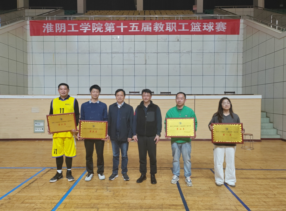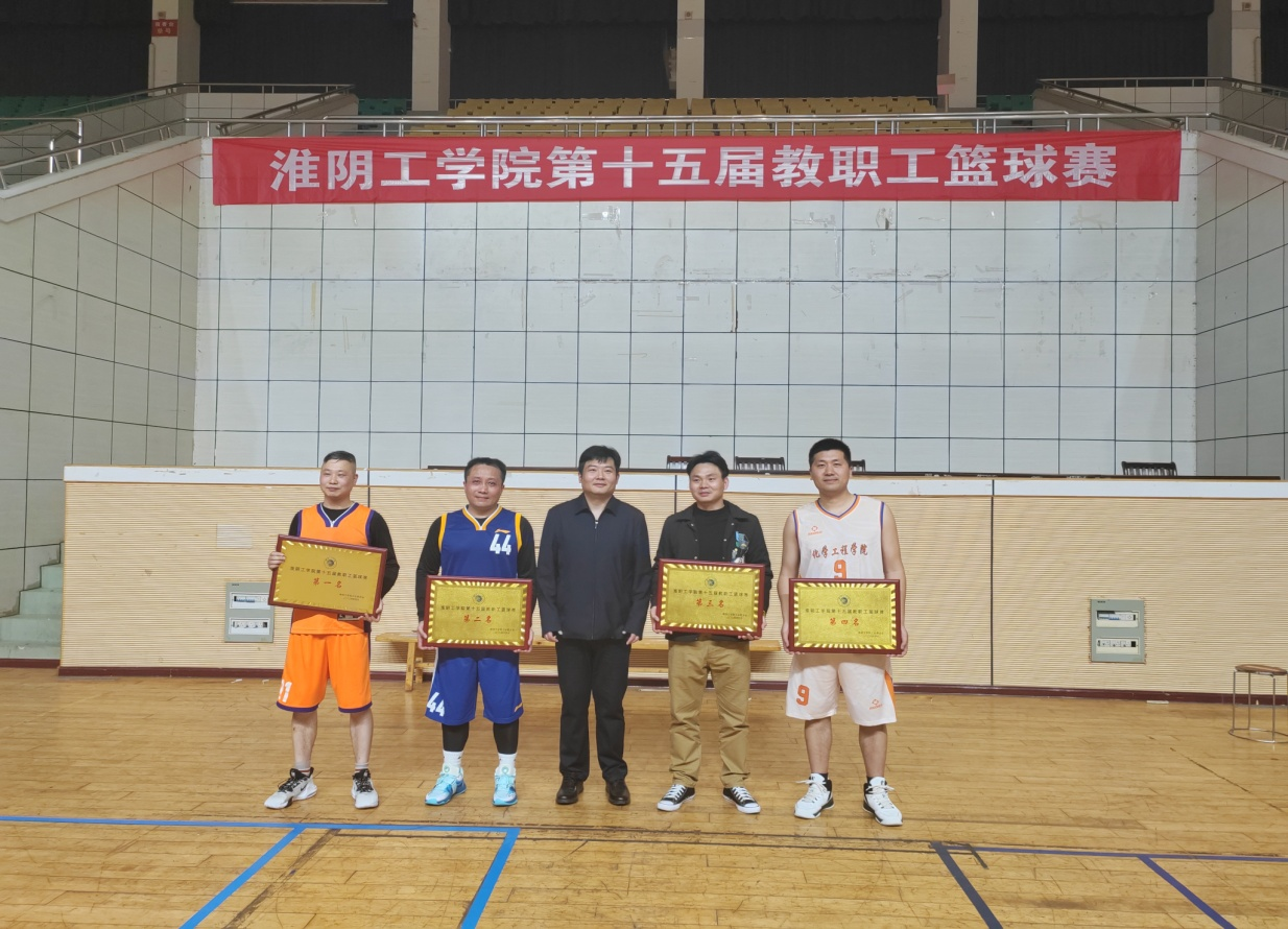 4月1日晚上,淮阴工学院第十五届教职工篮球赛在枚乘路校区篮球馆圆满落下帷幕,经过近二十天多轮激烈拼搏,数理学院代表队喜获冠军,建筑工程学院代表队获亚军,机关三和化工学院分获三四名,自动化学院应用技术学院联队、机关二机材学院联队、机关四人文学院联队、商学院获得五到八名。