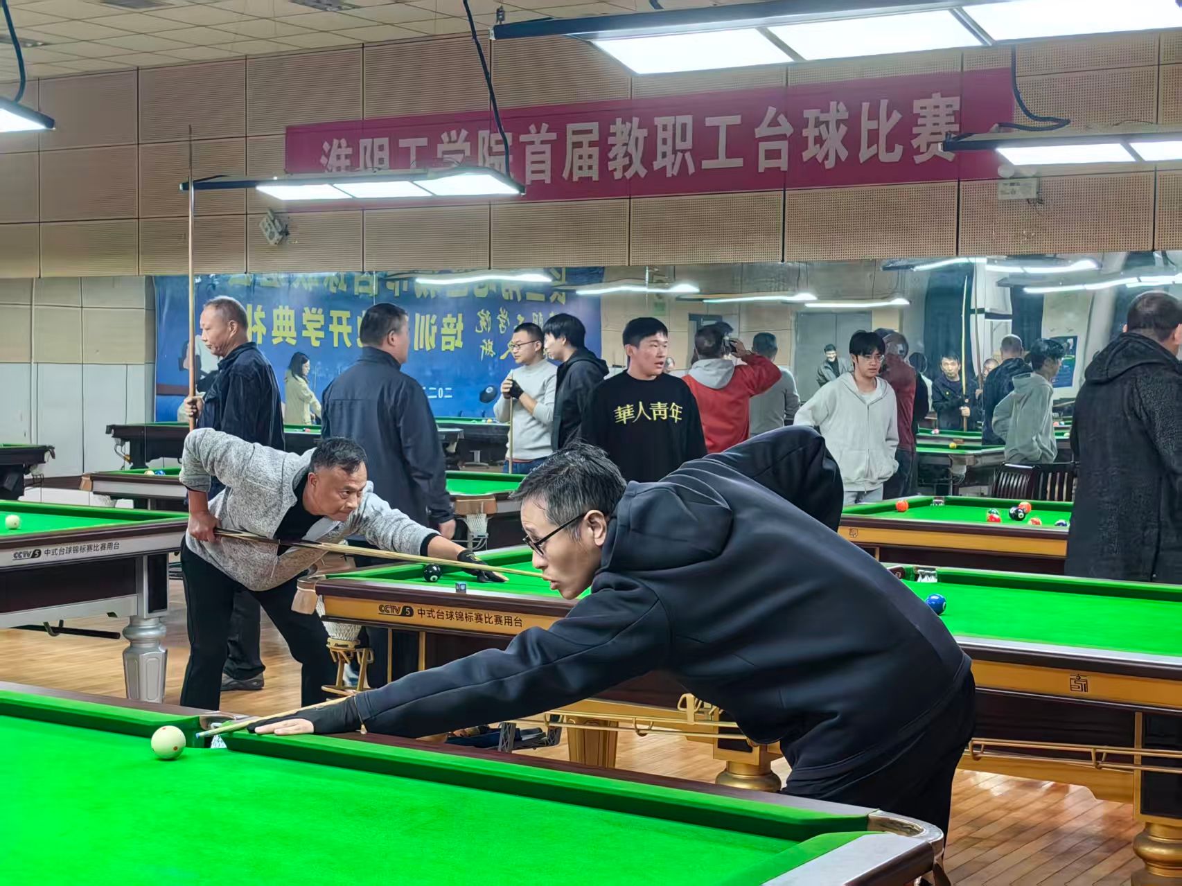 作为学校首次专门面向教职工举办的台球赛事,比赛采用中式八球单打赛制(不限男女),全程执行“单败淘汰制 + 抢三”规则。赛场上,选手们沉着应战、斗智斗勇,每一次精准击球都赢得阵阵喝彩;场边,观赛教职工热情助威、积极互动,现场气氛热烈而有序。此次比赛不仅充分展现了我校教职工团结拼搏、积极向上的精神风貌,进一步丰富了校园文化生活,也以体育为纽带,为学校迎接淮安大学创建工作营造了健康活泼、充满朝气的校园文化氛围。