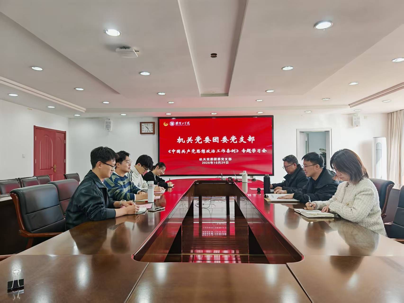 为深入学习贯彻习近平新时代中国特色社会主义思想,全面落实新时代党的建设总要求和新时代党的组织路线。10月29日,团委在枚乘路校区翔宇楼第三会议室召开《中国共产党思想政治工作条例》(以下简称《条例》)专题学习会。团委副书记魏然主持会议。