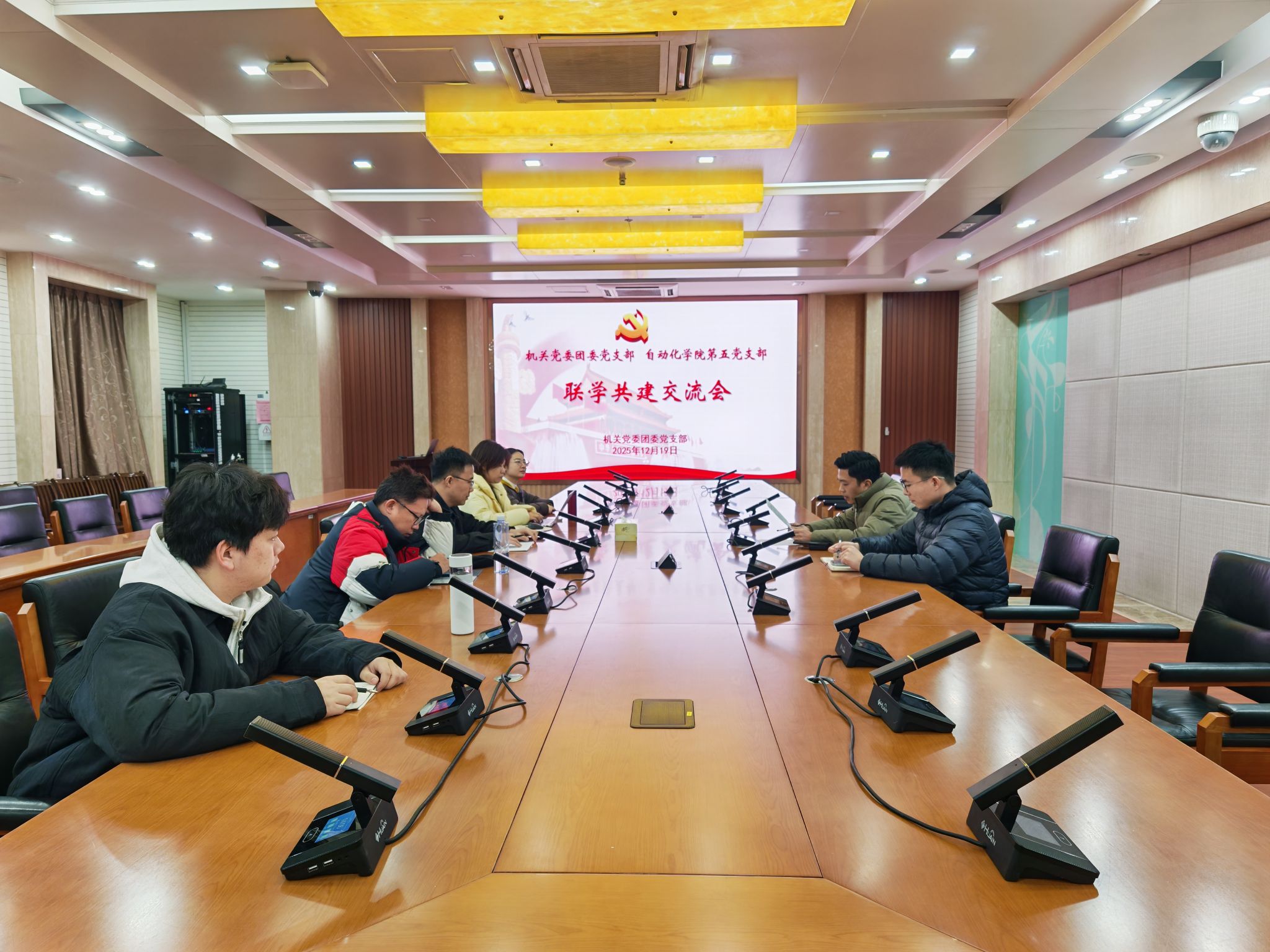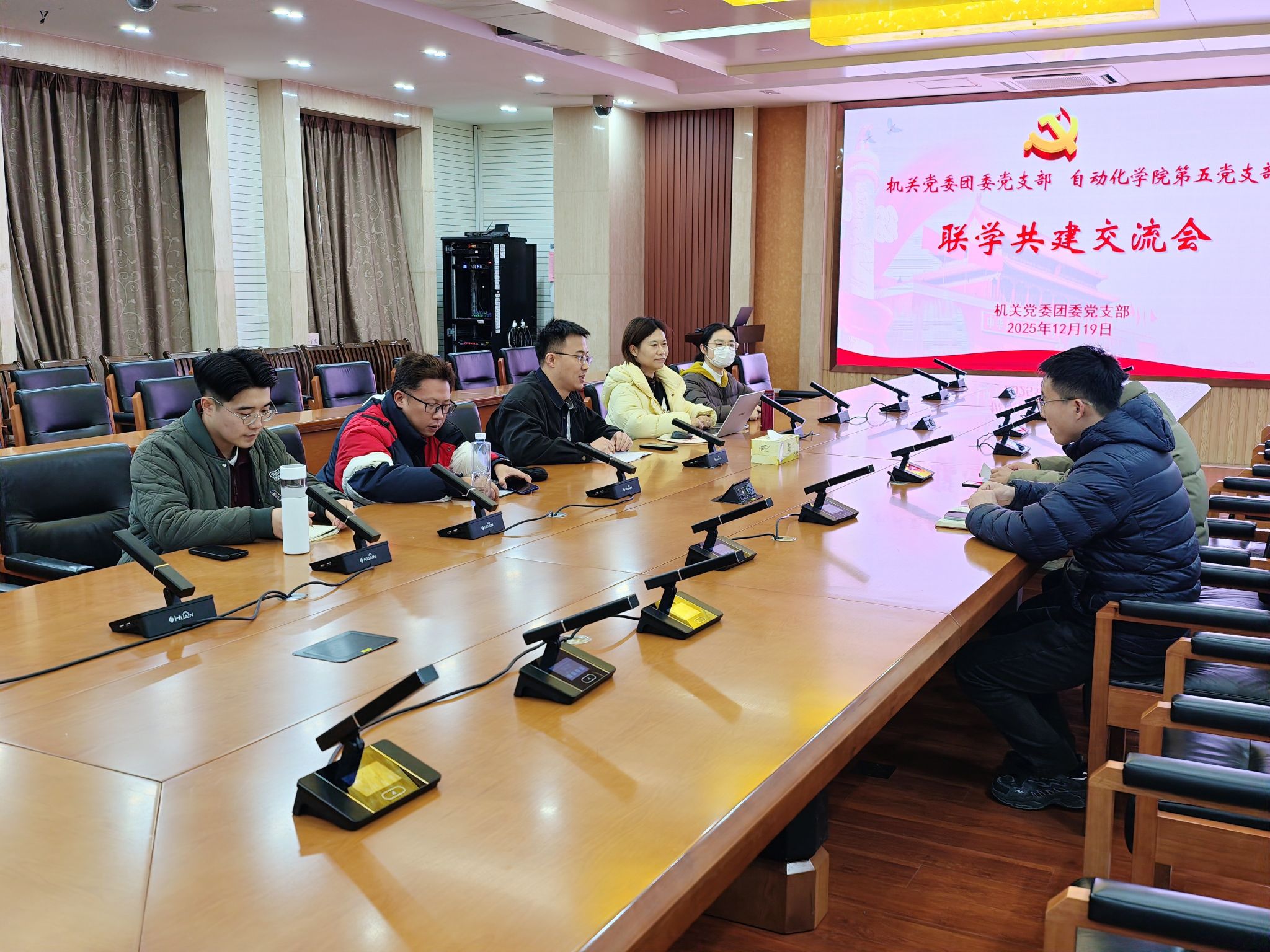 12月19日下午,机关党委团委党支部在枚乘路校区翔宇楼第一会议室,与全省高校党建工作样板支部——自动化学院第五党支部开展联学工建交流会。会议由团委副书记魏然主持,自动化学院第五党支部书记张静出席交流会。