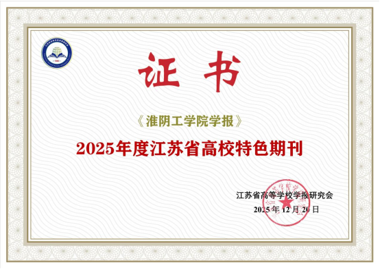 近日,《淮阴工学院学报》在江苏省期刊评价与行业权威评选中佳绩频传,先后获评“2025年度江苏省高校特色期刊”、入选2025年度维普“学术影响力进步期刊”,学报编辑王萍老师荣获2025年度江苏省科技期刊学会“优秀编辑”称号。