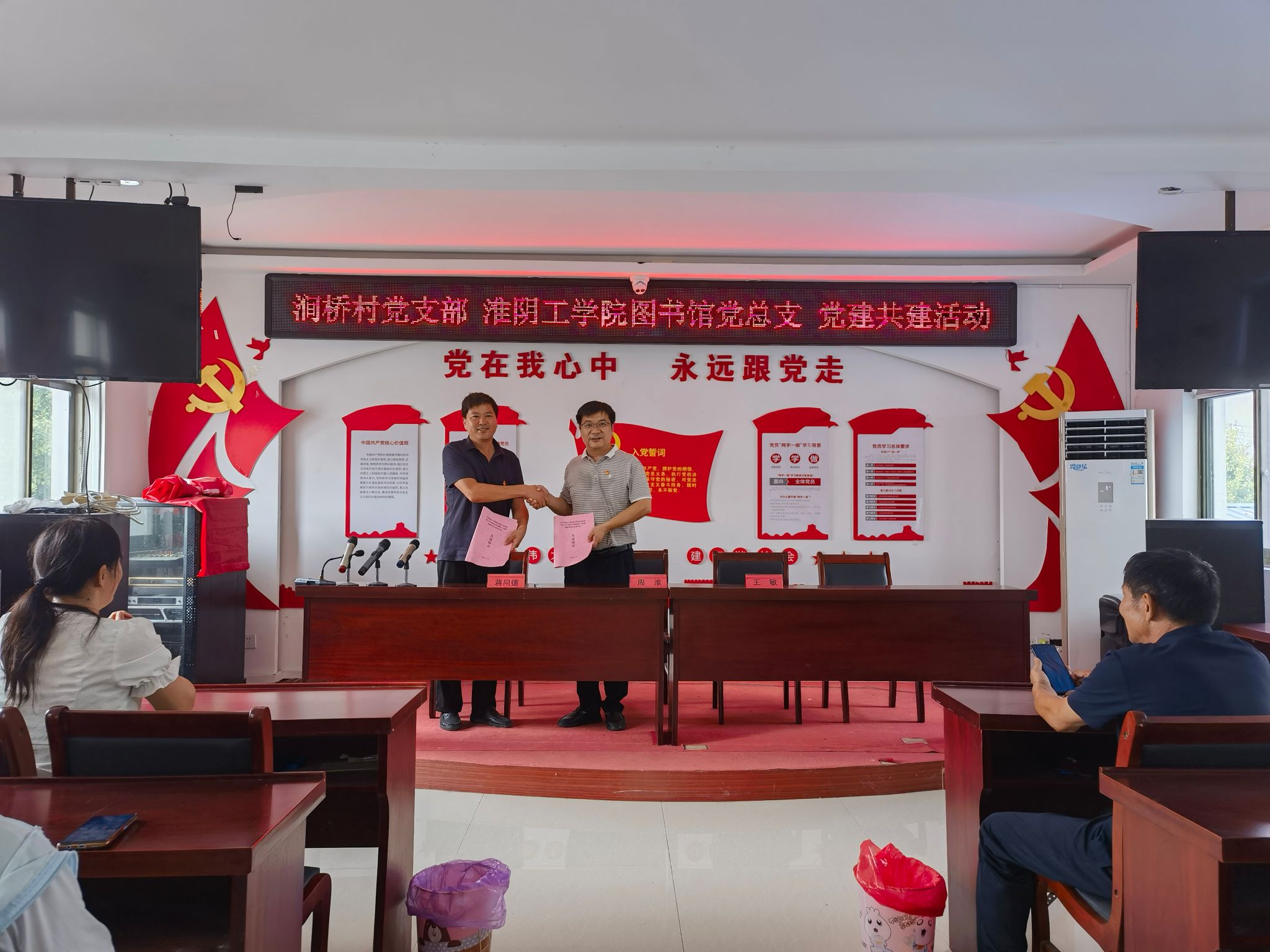 随后,大家来到淮阴区丁集镇涧桥村开展党建共建活动。活动中,图书馆党总支与涧桥村党支部签订共建协议,双方就加强组织建设、乡村振兴、文化交流等方面合作达成共识,为今后共同开展好党建工作奠定坚实基础。