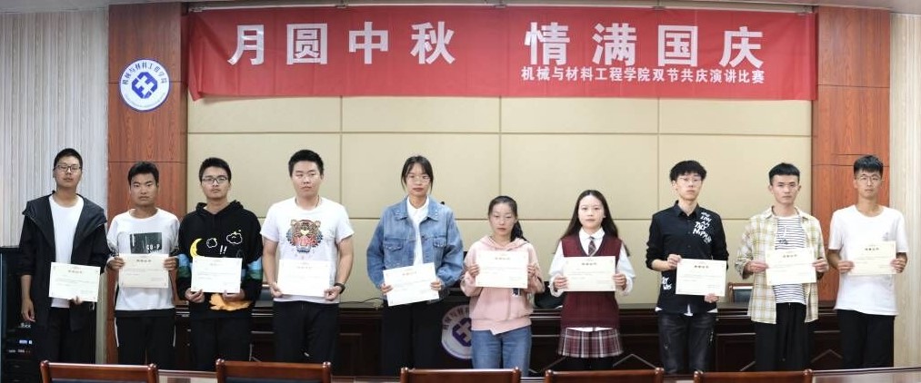 为进一步弘扬爱国主义精神,培养学生的爱国主义情感。10月1日上午10:00,机械与材料工程学院在15401举办“月圆中秋·情满国庆”主题演讲比赛。本次比赛由学生干部姚翰辰同学主持,机材学院2020级新生积极参与了此次比赛。