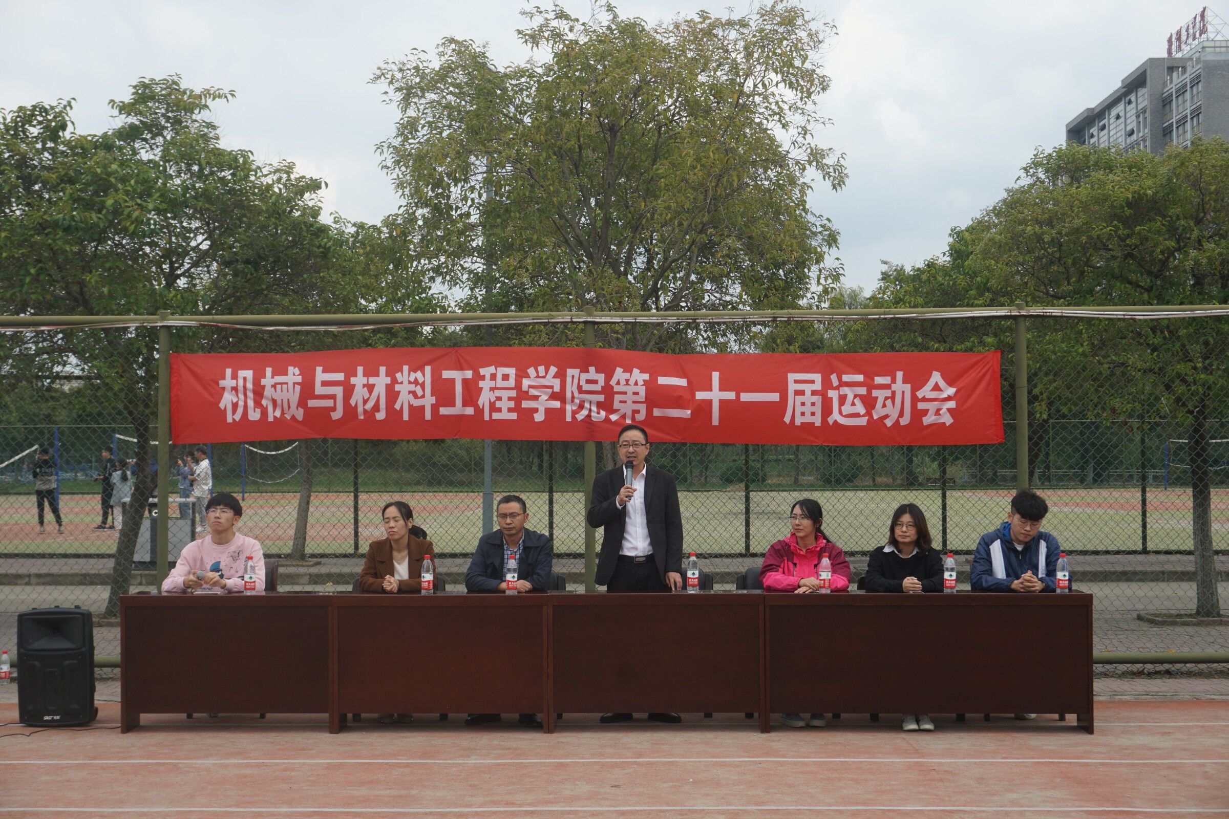 10月7日下午1:30,机械与材料工程学院在北苑操场成功举办第二十一届院运动会。学院党委副书记、副院长李炜,学工办主任郁大同,团委副书记郭巧会,2020级辅导员房晨老师、胡薇老师和全体新生参加本次活动。