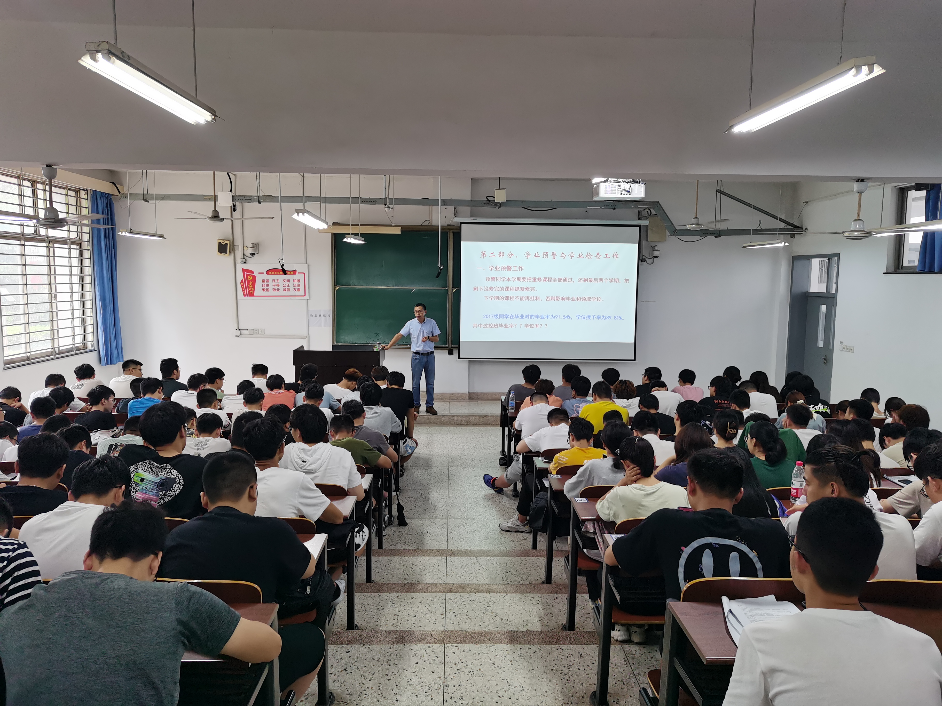 学工办郁大同主任对2018级的学业检查情况进行了通报,并提出同学们要清楚自身学业存在的问题,合理选课,除了挂科课程外,对于公共选修课、创新学分要一样重视。鼓励仍有挂科的同学要抓紧时间,认真对待学业,确保顺利毕业。