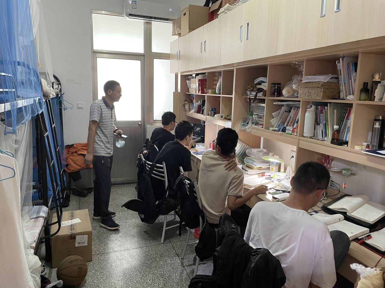 7月22日上午,机材学院学工办和部分2018级辅导员、班主任深入教室和宿舍走访留校考研复习同学。