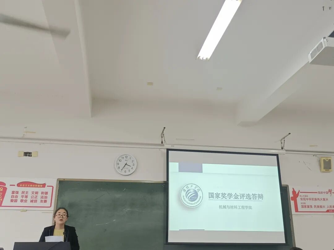 10月13日下午,机械与材料工程学院在12308举行了2021年国家奖学金答辩会。全体学工办辅导员老师出席了会议,并担任了评委。杜环利老师主持答辩会,经过个人申报、老师推荐、审核等环节,7位候选人参加了此次答辩会,各年级部分学生代表现场观摩。
