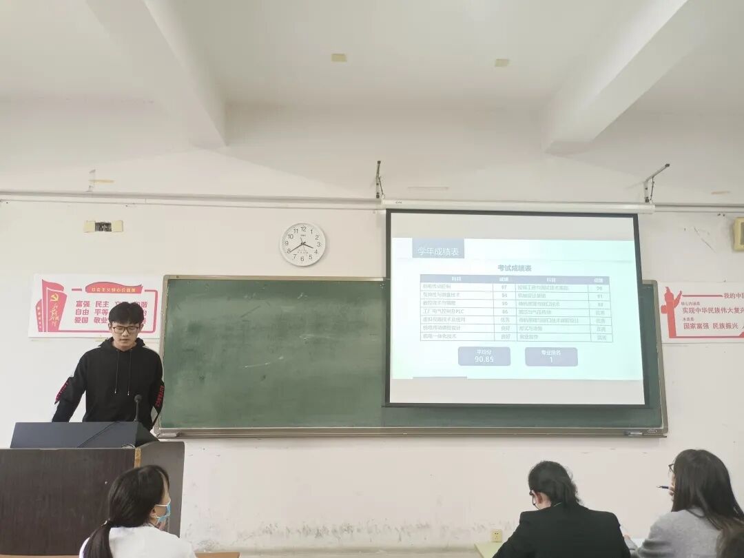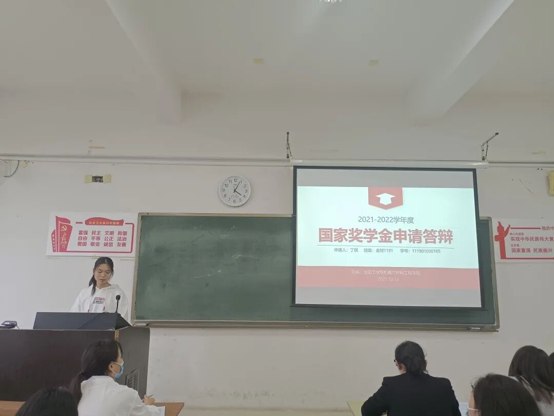 答辩会秉承公开、公平、公正的原则进行,根据事先抽签顺序,在答辩现场每位答辩者进行5分钟陈述。他们结合精心准备的PPT,形式多样的积极展示自己在学习成绩、社会实践、创新能力等方面取得的成绩。经过激烈角逐,最终王小伟、丁琪、倪凯杰三位同学脱颖而出,获得2021年度国家奖学金推荐资格。