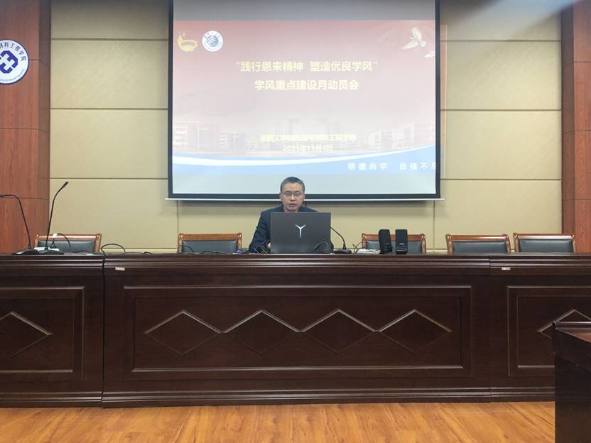 11月4日晚上7点,机材学院在15401会议室召开本学期学风重点建设月动员会,参加本次会议的有我院学工办主任郁大同老师和各班主要班委。