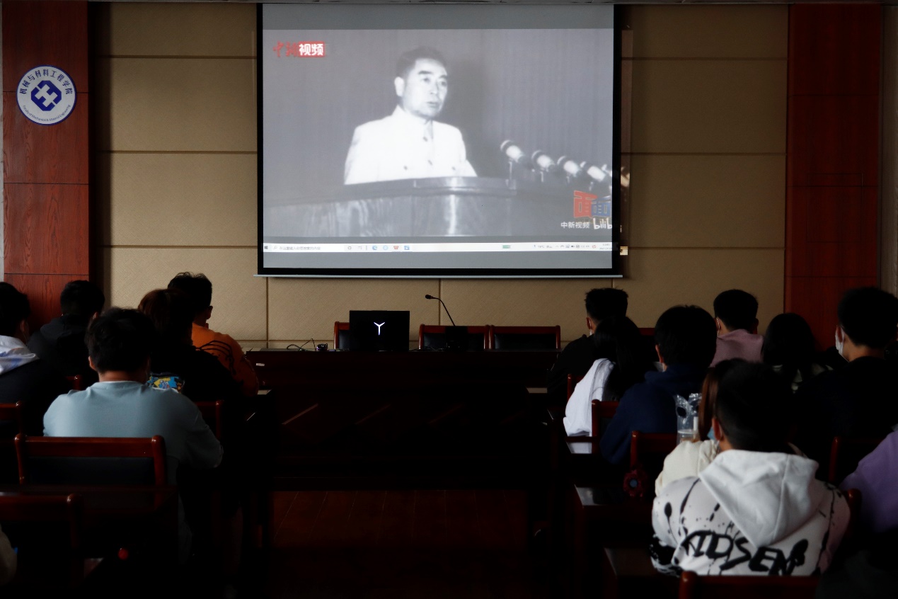活动开始,学生代表一同观看影片《大无大有-身边人眼中的周恩来》,影片以纪实的手法,通过卫士、护土、秘书等周总理身边的工作人员的视角,用真实的画面、动人的情感和感人的细节,展现了周总理始终严于律己、清正廉洁,把全面从严治党要求贯穿党的建设全过程。