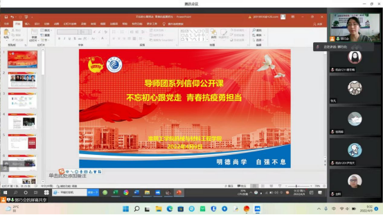 4月9日上午9:30,机械与材料工程学院在腾讯会议APP上开展导师团系列信仰公开课之“不忘初心跟党走 青春抗疫勇担当”,暨第二十八期团课第六讲。本次活动由郭巧会主讲,我院各年级优秀共青团员共计87名参加。
