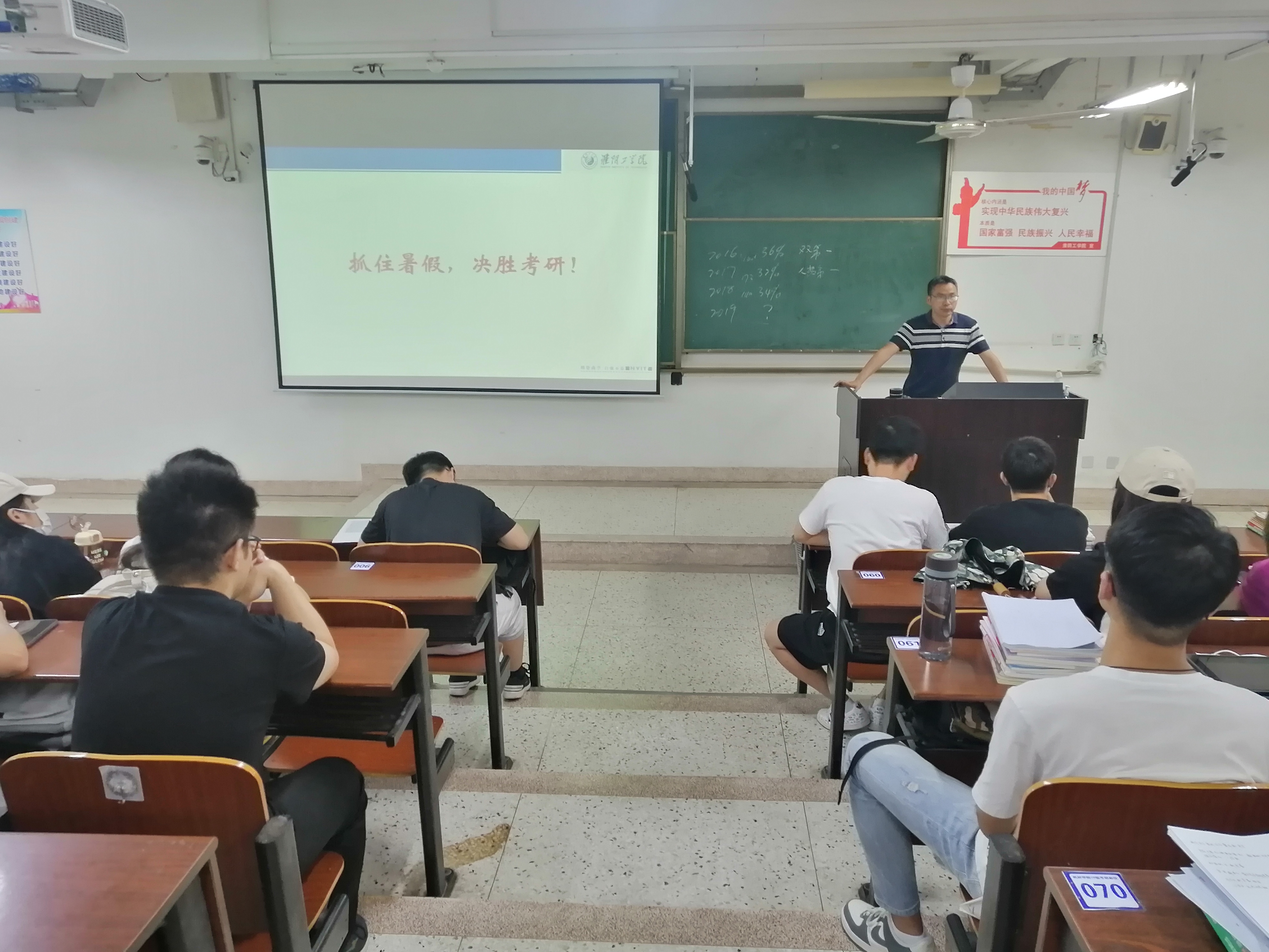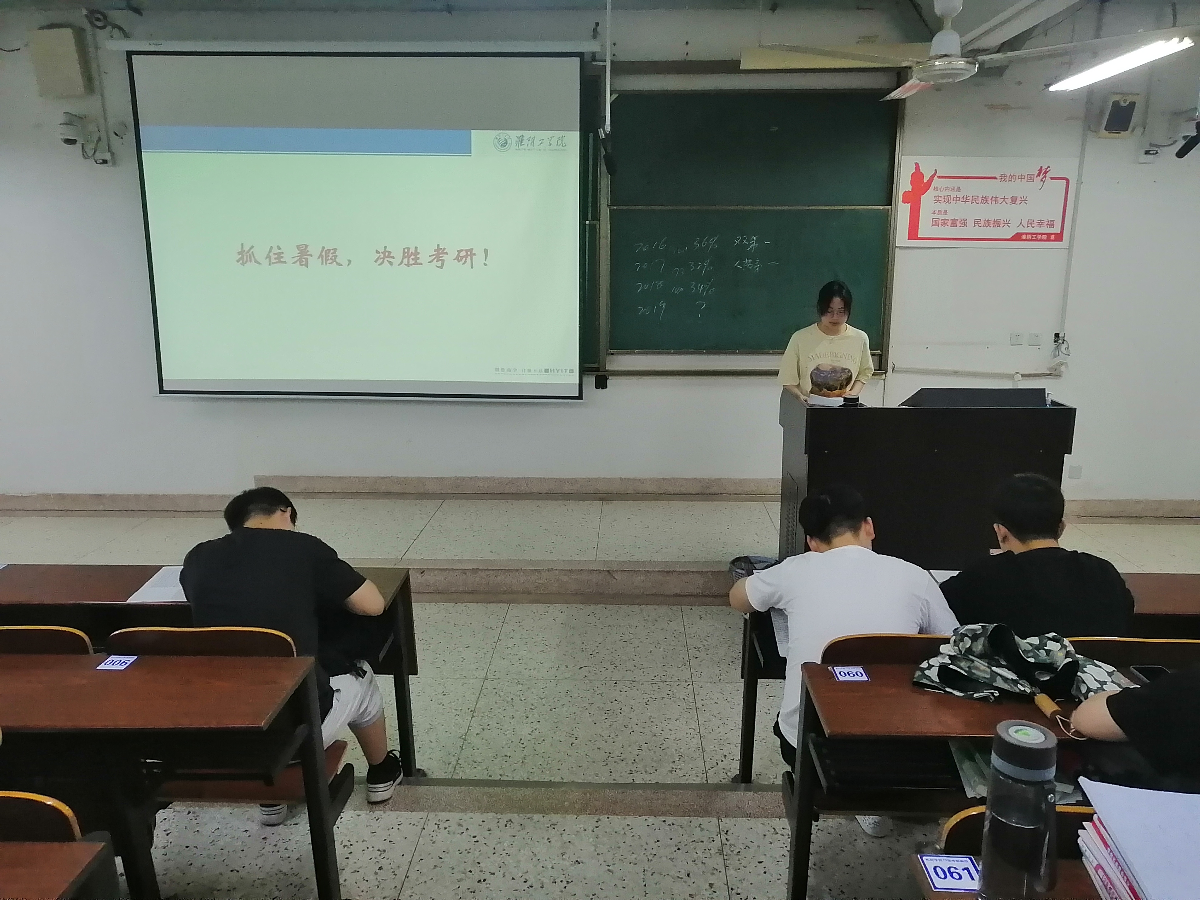 王明霞副书记分析了考研形势,指出抓住暑假、决胜考研的重要意义,要求同学们只争朝夕,制定好周密计划,组建考研小团队,争取考研成功。
