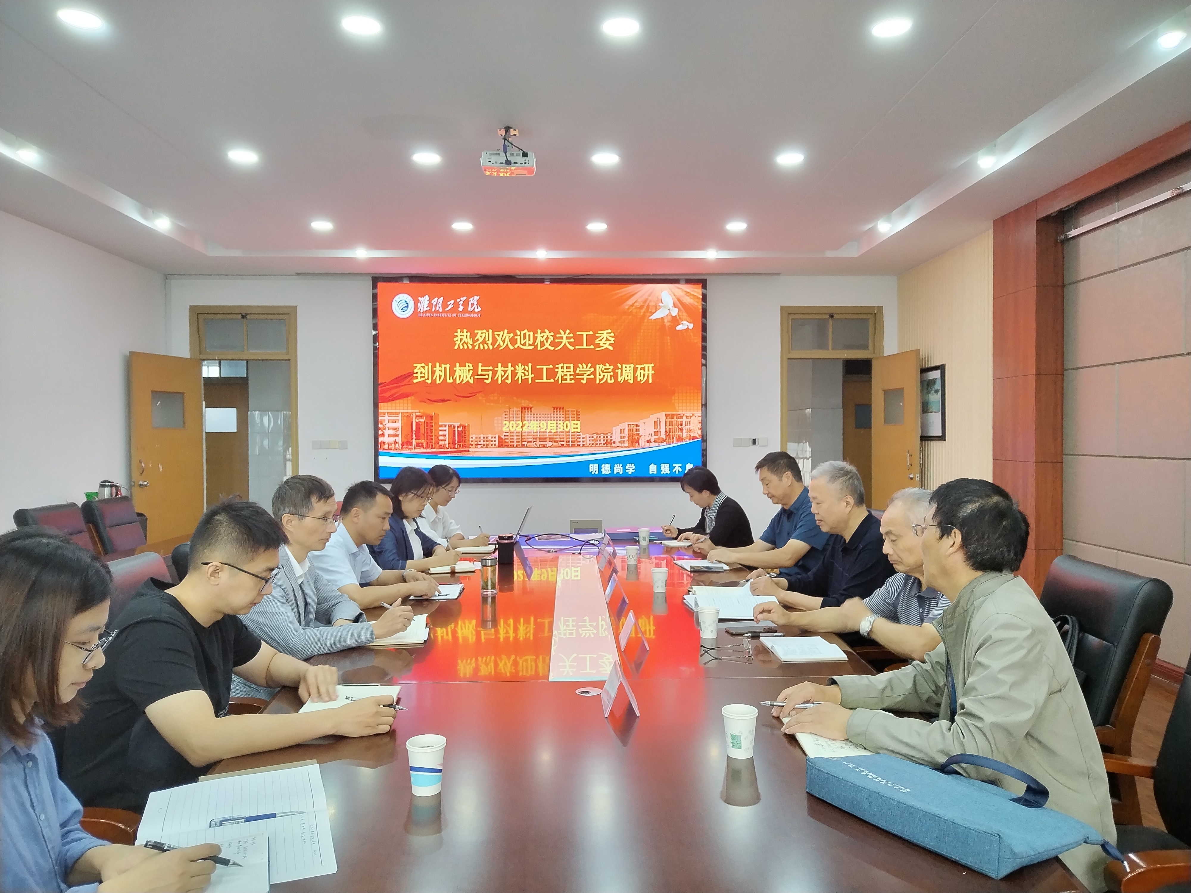 9月30日上午9:00,校关工委执行主任章跃、秘书长张乃钟、徐亚洲一行到机械与材料工程学院调研指导关工委优质化建设工作。院长高荣主持会议,学校离退休处处长戚耀贵、副处长王晓慧、机材学院党委副书记王明霞、关工委秘书郭巧会和辅导员等人员参加会议。