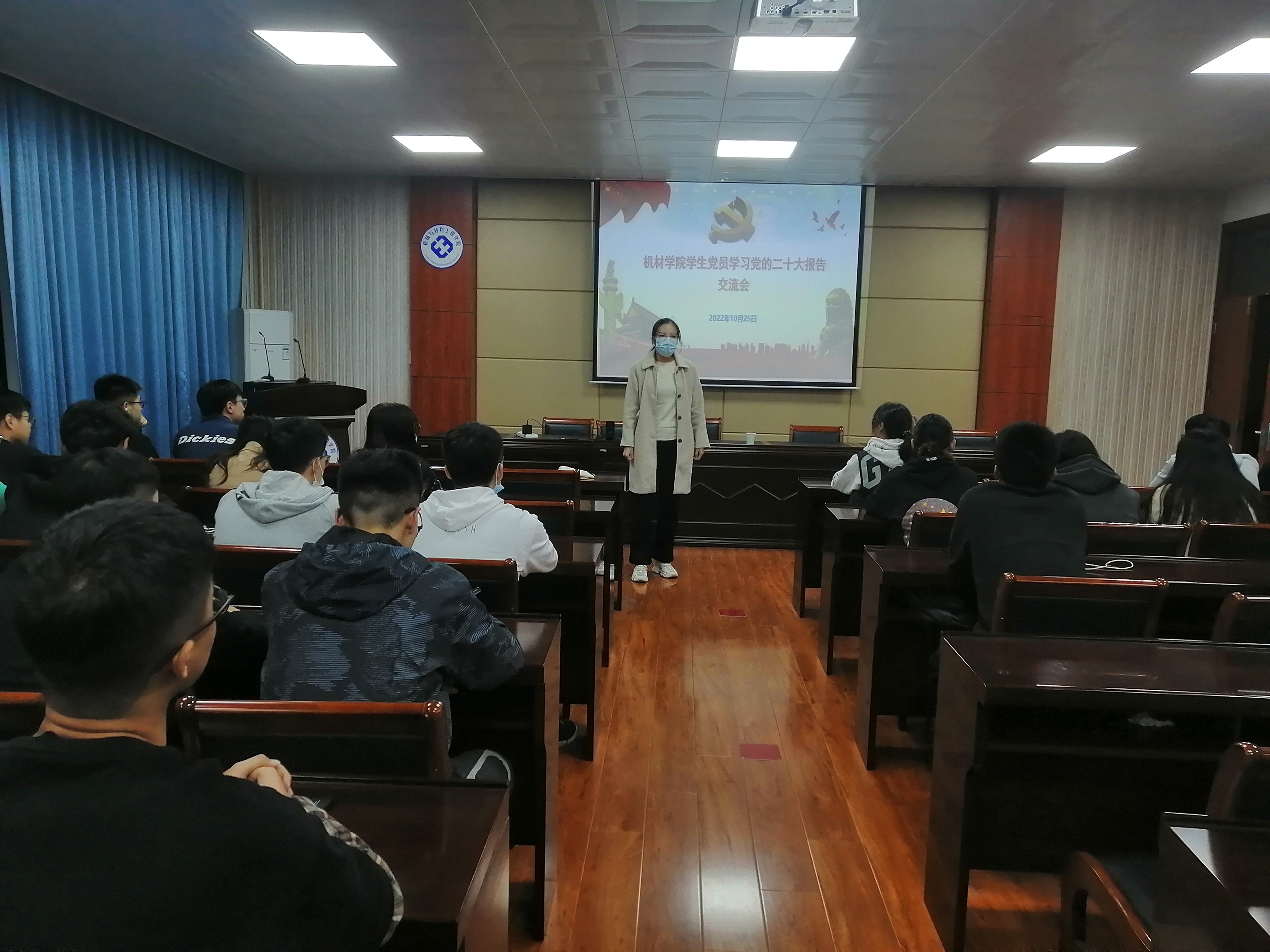 10月25日晚,机材学院学生党员在学院会议室召开学习党的二十大报告交流会,会议由支部书记罗泽如老师主持。机材学院学生党员通过集中聆听习近平同志所作的报告,畅谈观看体会,一致表示对报告的高度赞同和对以习近平同志为核心的党中央的衷心拥护。