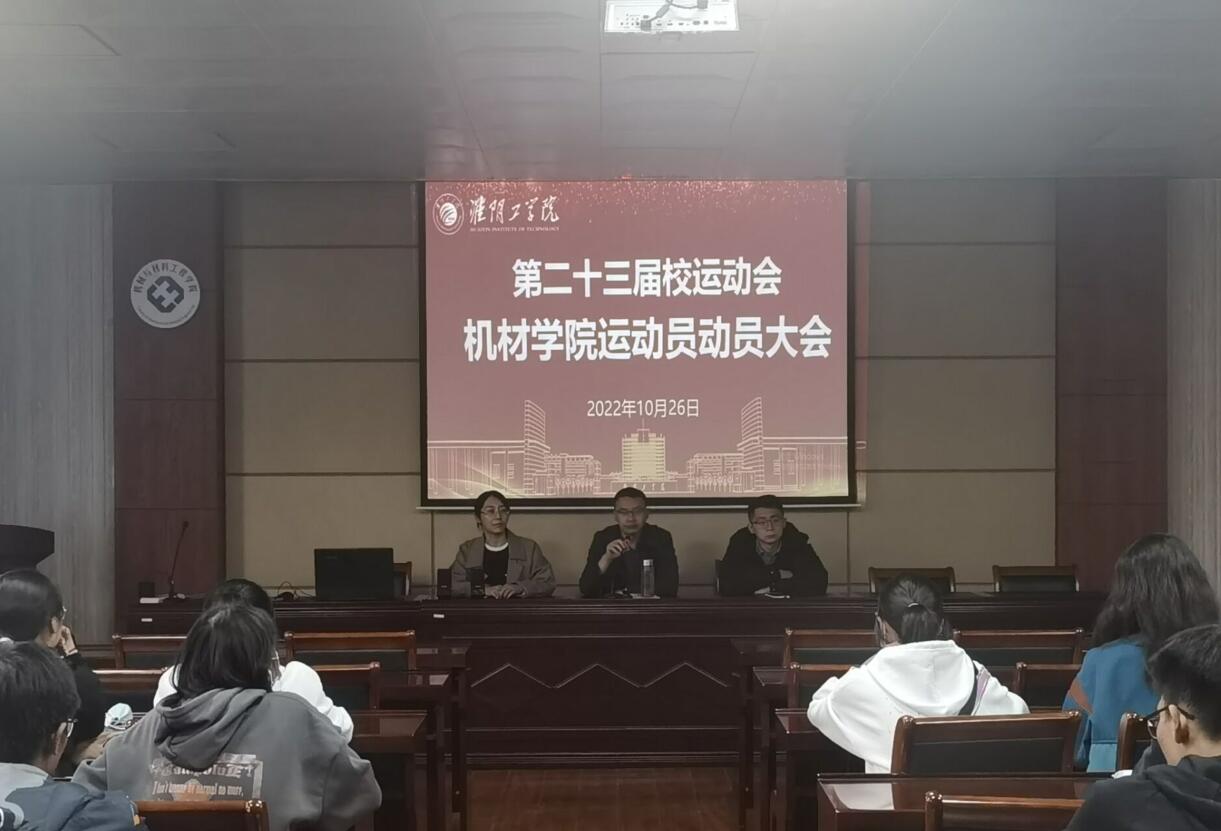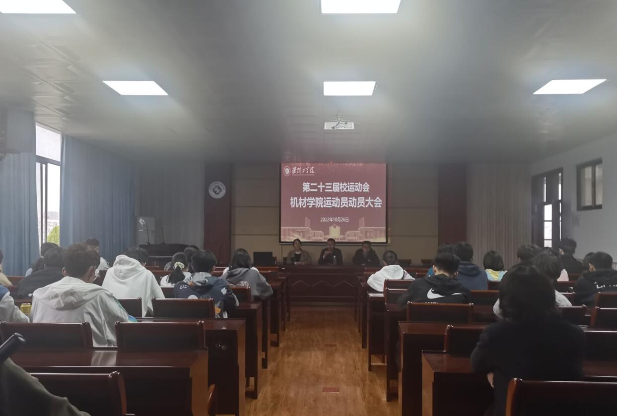 在校第二十三届田径运动会到来之际,为充分调动运动员积极性,保障训练各项服务工作有序进行,10月26日下午15:00,机械与材料工程学院在15401报告厅召开运动员赛前动员大会,学院学工办主任郁大同、团委副书记郭巧会、2021级辅导员朱天明以及全体运动员参加动员会。
