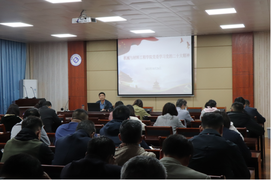 10月26日下午,机械与材料工程学院党委召开理论中心组和教职工大会,认真传达学习党的二十大精神,会议由学院党委书记马从兵主持。