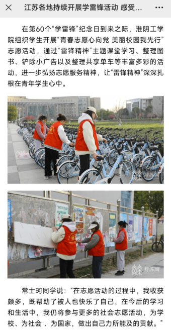 活动还受到了江苏省荔枝新闻的宣传报道,学生志愿者常士柯接受了该媒体的采访。