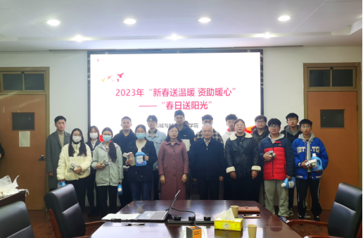 3月22日,机材学院开展“新春送温暖 资助暖人心”——“春日送阳光”活动。学院党委副书记、副院长王明霞,辅导员王全国开展相关活动,并邀请关工委副主任徐亚洲、资助管理中心蒋丹丹为贫困学子送上生活必须品。