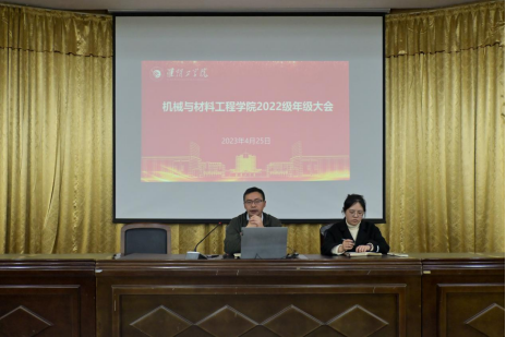 4月25日晚,机材学院在图书馆报告厅和逸夫楼YF0404教室采取线上线下结合的方式召开2022级年级大会,22级辅导员郁大同、纪佳和全体同学参加会议。
