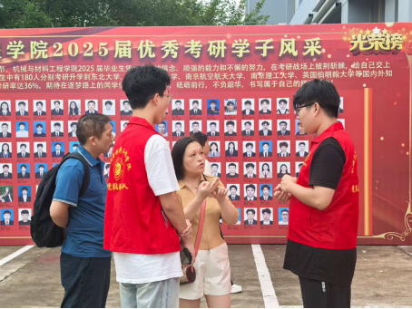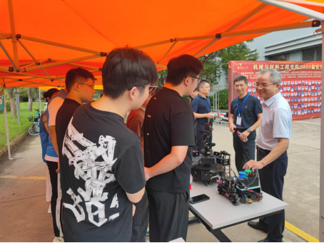 机材学院15号楼门口,学术与青春氛围交织。机器人协会、3D动力协会等学院王牌专业社团纷纷亮出“看家本领”,进行了生动的成果展示与招新宣传,让新生们提前感知科技的魅力与创新的乐趣。学院艺术团的同学们用悠扬的歌声热情迎接着新伙伴,而“童梦机匠”志愿队则带来了庄严而富有教育意义的“两弹一星”精神宣讲,为新生们上了一堂生动的“入学第一课”,激励他们传承科学精神,树立报国之志。