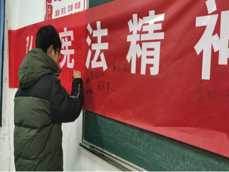 学院团委组织学生开展宪法主题歌曲《宪法伴我们成长》传唱活动,通过歌声在学生中营造学习宪法的浓厚氛围,进一步增强学生的宪法意识,促进其自觉尊法学法守法用法。此外,学院精心策划宪法宣讲活动,组织学生干部组成宣讲团,通过发放宣传资料、讲解宪法的基本原则、主要内容及典型案例,让同学们深刻感受宪法的精神与法治的力量,推动宪法真正走进学生、深入人心。