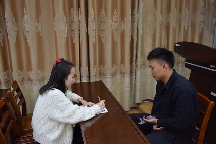宣讲会上,负责人通过PPT 展示向同学们介绍了公司概况、招聘岗位、培训计划等信息。宣讲结束后,负责人解答了同学们的相关问题并进行面试,与部分同学达成了初步签约协议。