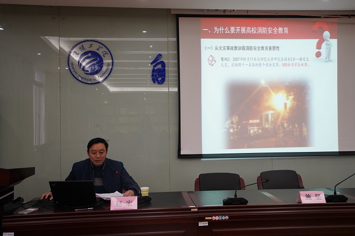 11月25日,自动化学院开展消防安全专题教育讲座。活动邀请校保卫处副处长赵宏主讲,自动化学院全体教职工及部分学生参加活动。