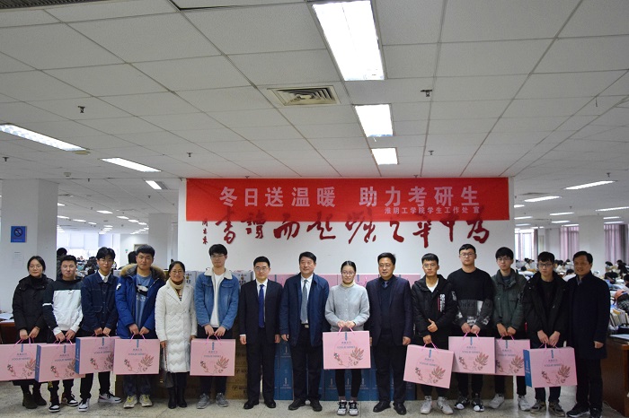 12月11日下午3点,自动化学院于枚乘路校区南苑图书馆考研学生自修室举办“冬日送温暖,助力考研生”考研学子慰问活动。院党委副书记张海江、院长王业琴、学工办副主任贾笑颖及辅导员汤小苗老师出席本次活动。