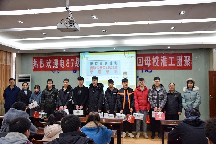12月16日下午3点,自动化学院于考研倒计时还有10天之际,在笃行楼13509举行2021届考研学子慰问活动。院党委书记施坚、院长王业琴、党委副书记张海江以及学工办副主任贾笑颖出席本次活动。
