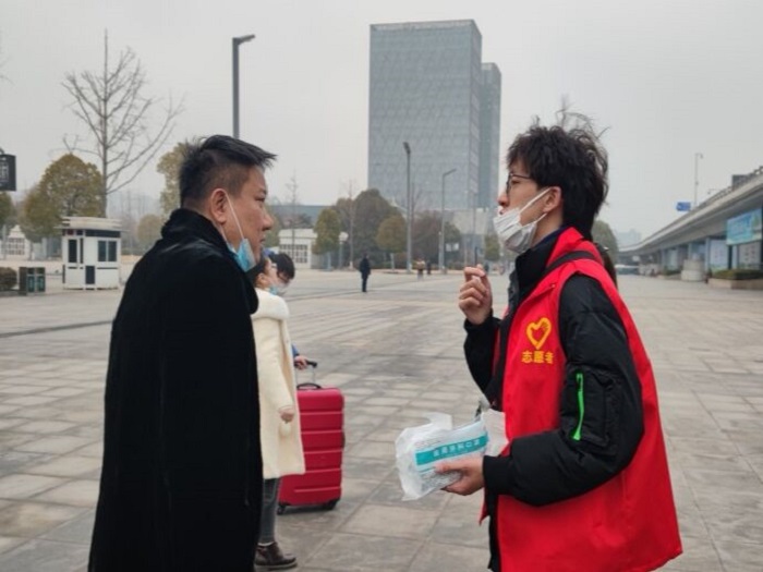 志愿者们分别于各自家乡所在汽车客运站、高铁站等地开展志愿服务工作,宣传疫情防控知识,积极为旅客提供行路指引,协助维护公共秩序,为旅客提拿重物行李,并为未携带口罩的乘客发放免费口罩等。