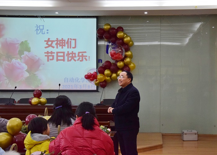 党委副书记张海江代表学院领导及全体男同志向女同胞们致以节日的祝福!他强调了长期以来党对妇女解放工作的重视,肯定了广大妇女工作者们付出辛勤汗水的成就,并赞叹了女同志们巾帼不让须眉的精神。同时希望我院全体女教职工团结协作、同心同德,以崇高的奉献精神,再续新的辉煌。