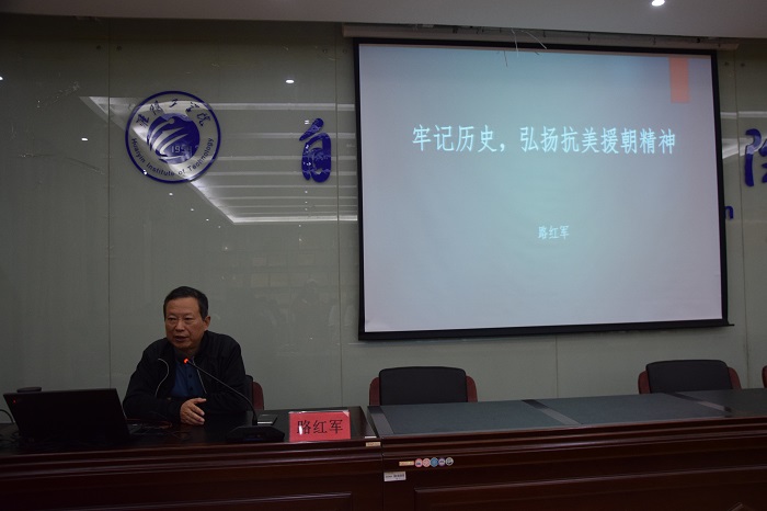 11月5日晚,自动化学院关工委常务副主任路红军在笃行楼13509以“牢记历史,弘扬抗美援朝精神”为题,给学院60余名入党积极分子上了一堂生动的党课。