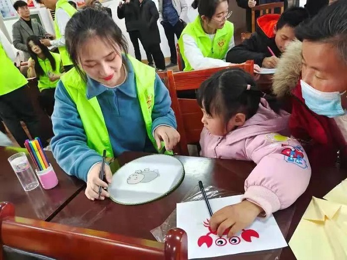 活动现场,学院领导与三树镇的30名结对帮扶儿童亲切交流,并为孩子们送上了零食大礼包。学院艺术团的志愿者们为孩子们带来了精彩的表演,孩子们在悠扬动听的歌舞联唱中接受爱国主义精神的熏陶,在灿烂的笑容中消除了心中隔膜拉近了彼此距离。在大学生志愿者的帮助下,小朋友们共同挑战完成2个爱心任务:折红心、小红船、纸飞机,现场纸飞机飞行比赛;在团扇上用蜡笔、彩笔等画出自己心中的“中国梦”。孩子们在团结协作中感受快乐,活动现场爆发出一阵阵的掌声和欢呼声。