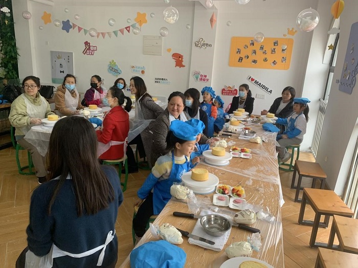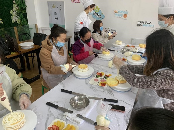 活动中,甜品老师向大家详细介绍了工具、原材料和蛋糕制作步骤,随后,在老师的现场教学示范下,大家兴致勃勃地拿起制作工具,在各自的蛋糕胚子上展开想象,创意自我。经过一段时间摸索、欢笑和创作,各式各样的精美蛋糕新鲜诞生了。