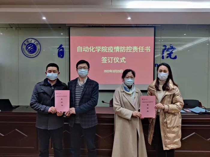 为了进一步贯彻落实省、市关于新型冠状病毒引发的肺炎疫情防控工作的相关文件及会议精神,严格落实学校疫情防控工作要求,科学落实防控工作措施。3月23日下午,自动化学院举行疫情防控责任书签订仪式,学院领导和全体辅导员、班主任代表参加活动。