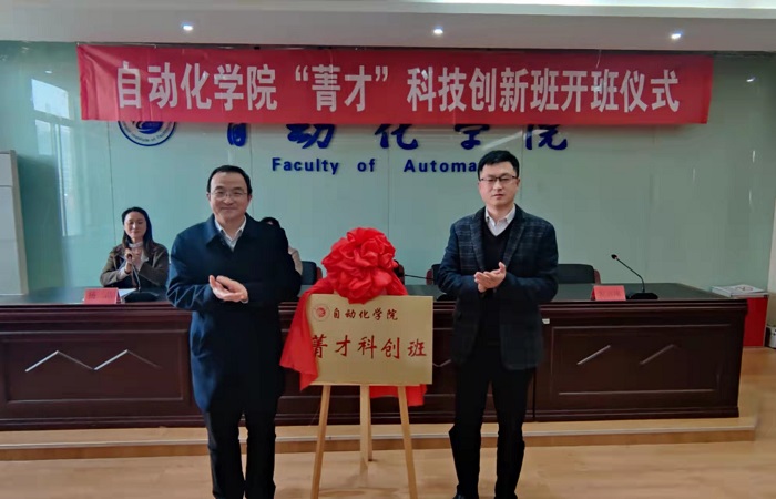 院党委书记郑洋表示,立德树人是高校的根本任务,“为党育人、为国育才”是教育工作者的初心和使命。自动化学院成立“菁才”科技创新班的目的是要在提高自动化学院学生整体素质基础上。进一步注重对优秀学生的培养,进一步提升学生的科技创新能力和实践动手能力。希望各位科技创新班的学子们以身边榜样激励前行力量,珍惜加入科创班的机会,发挥出优秀学生的榜样带头作用,为自动化学院学科竞赛活动以及优良学风建设作出应有的贡献。