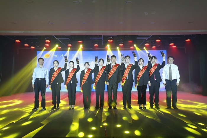 党委常委、副校长朱晓文,党委常委华学成为五四青年奖章获得者颁奖