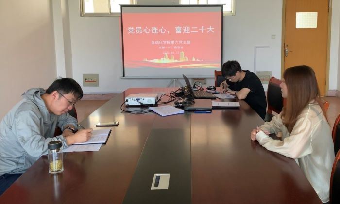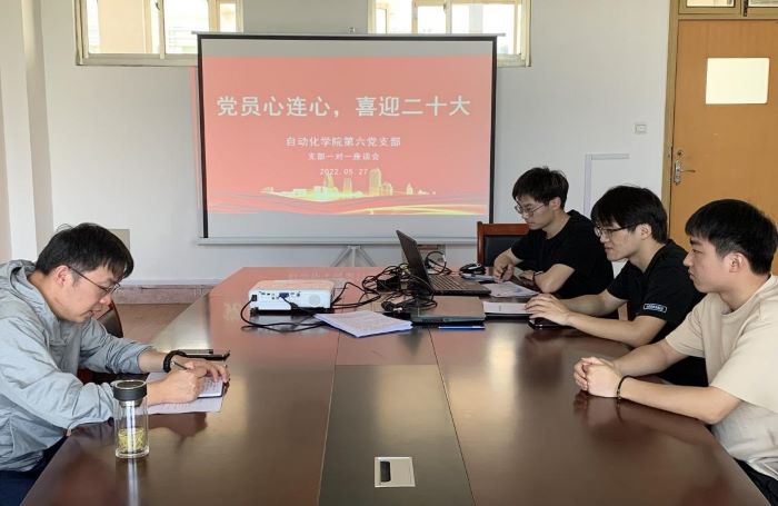 为严格落实好党支部谈心谈话工作制度,全面了解和掌握学生党员的学习、生活、思想状况,解决学生在学习和生活中遇到的问题,进一步推进学生党支部工作顺利开展,提高党支部的凝聚力和向心力,帮助党员提高认识、正视问题,结合支部内的实际情况,自5月27日起,自动化学院第六党支部通过分批次一对一的形式开展“党员心连心,喜迎二十大”谈心谈话党日活动。
