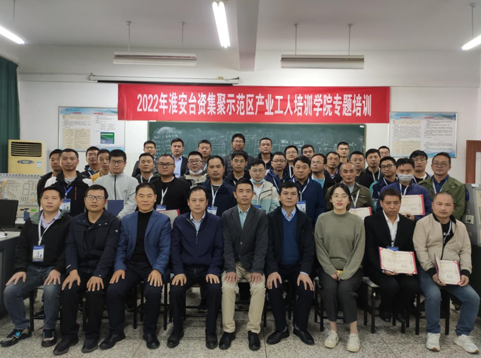 10月14日,2022年淮安台资集聚示范区产业工人自动化技术专题培训圆满完成,在自动化学院PLC实验室举行了结业仪式,自动化学院和继续教育学院领导为学员颁发了结业证书。