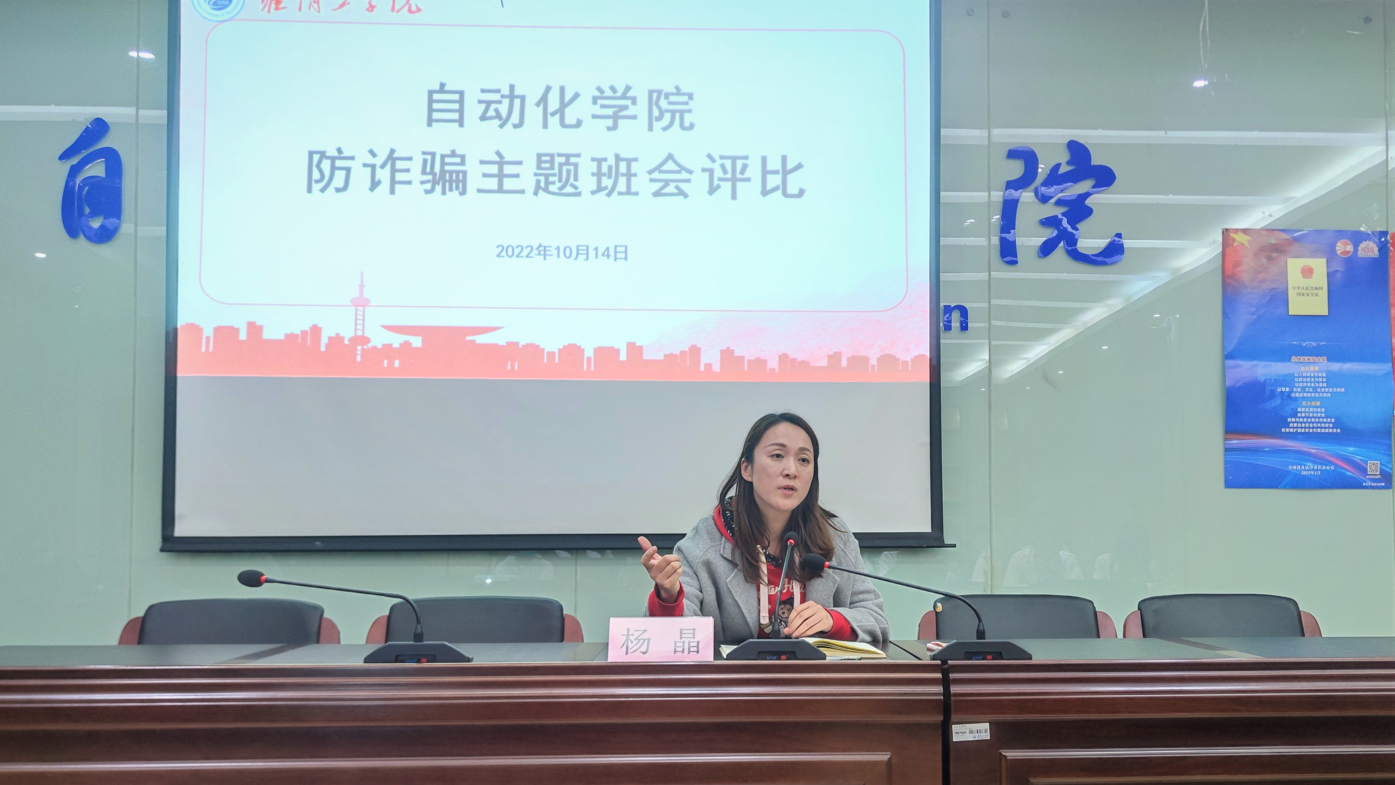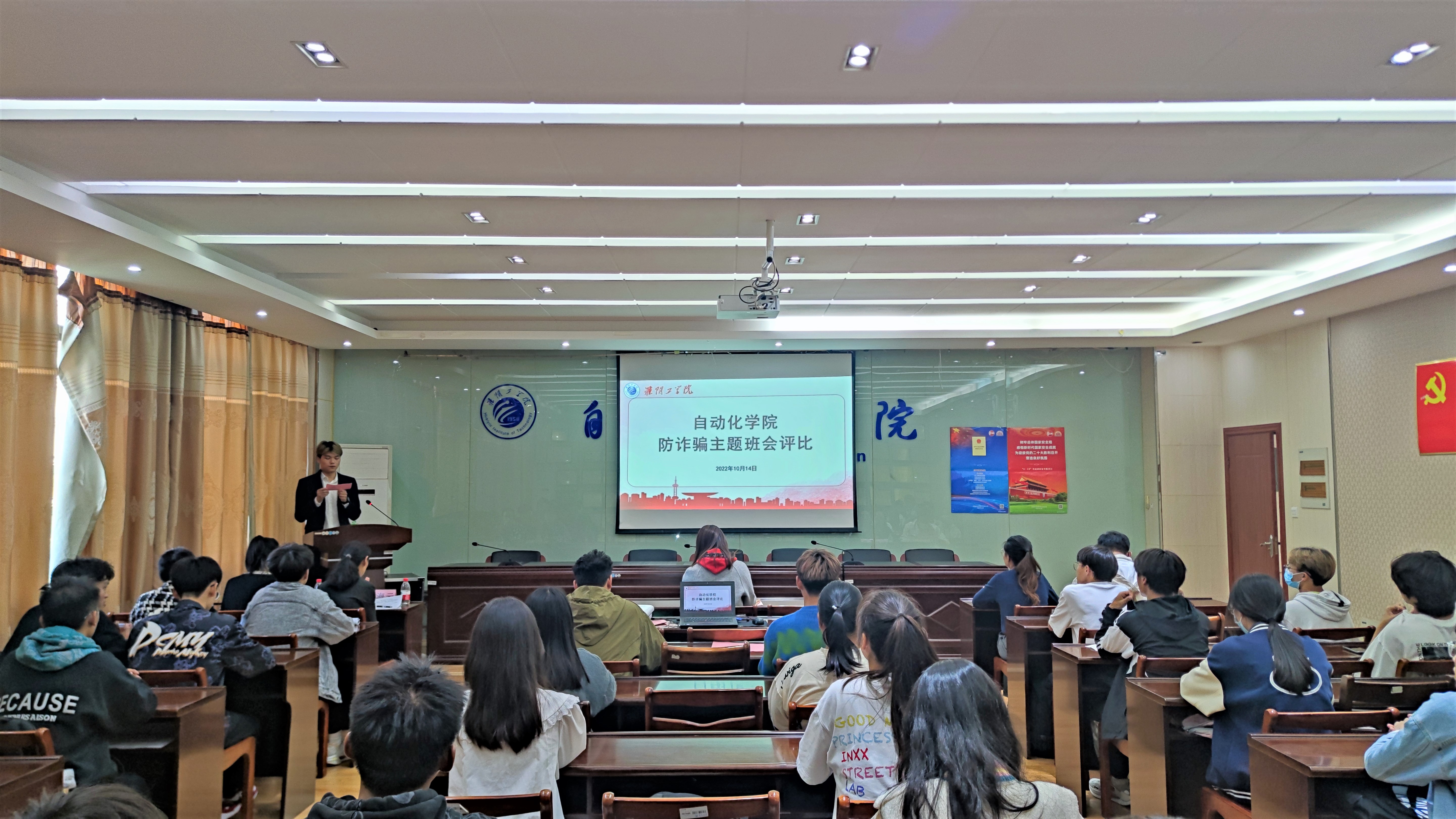 为进一步提高大学生对诈骗手法的识别和防范能力,10月14日下午自动化学院开展防范电信网络诈骗主题班会汇报评比活动。自动化学院党委副书记杨晶,学工办全体辅导员出席本次活动。