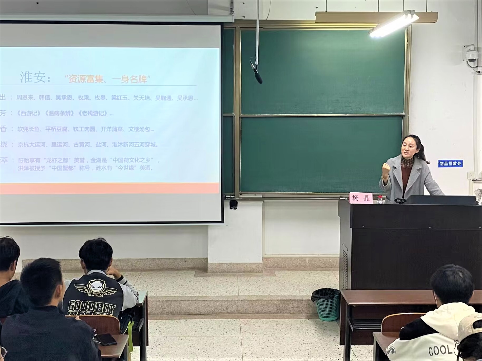讲座伊始,杨晶为同学们介绍了淮安“资源富集,一身名牌”的文化背景,此地集名人、名著、名菜、名水和名品为一体;介绍了自动化学院办学历史、教学资源、师资力量、教学成果等多方优势,增强了在场学生的价值认同、文化认同、专业认同、身份认同,为22级新生的成长成才开好头、起好步。