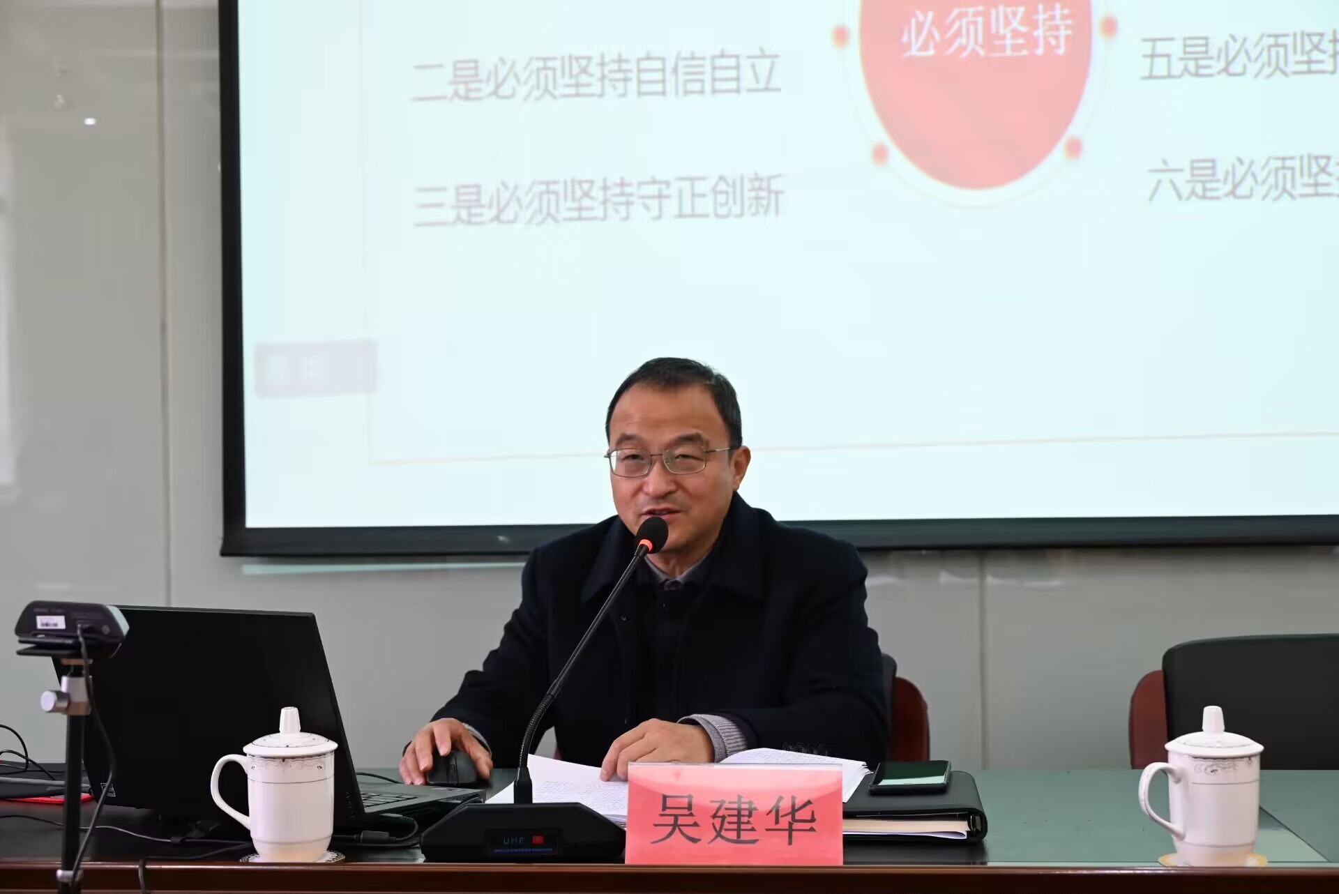 吴建华强调,要认真学习领会党的二十大精神,紧密团结在以习近平同志为核心的党中央周围,高举中国特色社会主义伟大旗帜,全面贯彻习近平新时代中国特色社会主义思想,务必不忘初心,牢记使命,务必谦虚谨慎、艰苦奋斗,务必敢于斗争、善于斗争,牢记空谈误国、实干兴邦,坚定信心、同心同德,埋头苦干、奋勇前进,为全面建设社会主义现代化国家、全面推进中华民族伟大复兴而团结奋斗!