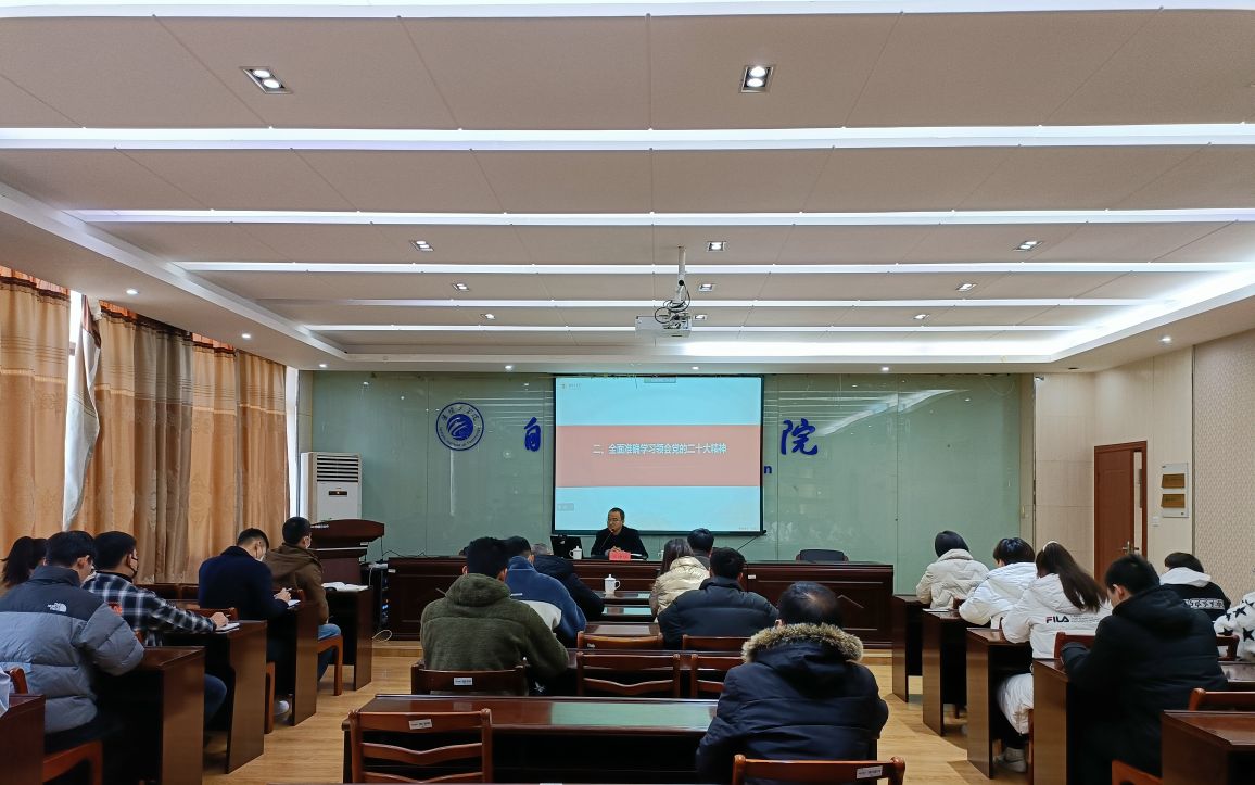 11月30日下午,校党的二十大精神宣讲团成员、党委副书记、副校长吴建华到自动化学院宣讲党的二十大精神。自动化学院党委书记郑洋主持会议,学院师生代表参加报告会,宣讲会以线上线下相结合的方式进行。